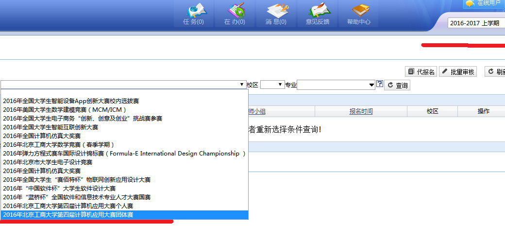 (二)审核:参赛个人赛和团队赛中程序设计组的同学,报名审核在2016年5月25日前完成。