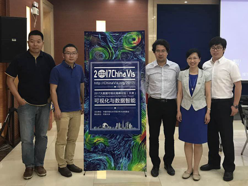 5月11日下午2017大数据可视化高峰论坛在天津大学举行,论坛邀请了北京大学袁晓如研究员、天津大学张加万教授、浙江大学陈为教授和山东大学汪云海博士分别作了题为“数据、可视化、人”、“可视分析的应用与实践”、“从描述是分析到指导式分析——可视分析的下一个十年”、“任务驱动的自动可视化”特邀报告,公司陈谊教授也应邀在高峰论坛上做了题为“食品安全大数据可视分析”的特邀报告。来自全国各地的100余位专家学者、政府人员、企业人士和高校师生参加了论坛,论坛由天津大学毕重科博士主持。