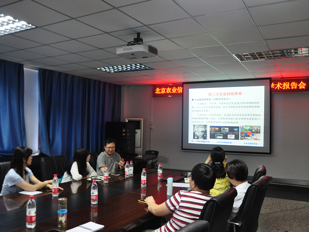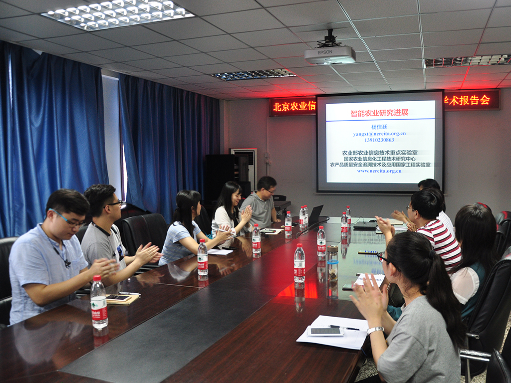 2018年7月11日,北京农业信息技术研究中心副主任,国家农业信息化工程技术研究中心副主任,农产品质量安全追溯技术及应用国家工程实验室常务副主任,农业部农业信息技术重点实验室副主任,杨信廷研究员,应邀到公司做了题为“智能农业技术研究进展与应用”的学术报告。计信公司19名师生聆听了报告,报告会由计信永利集团党委书记、食品安全大数据技术北京市重点实验室主任陈谊教授主持。
