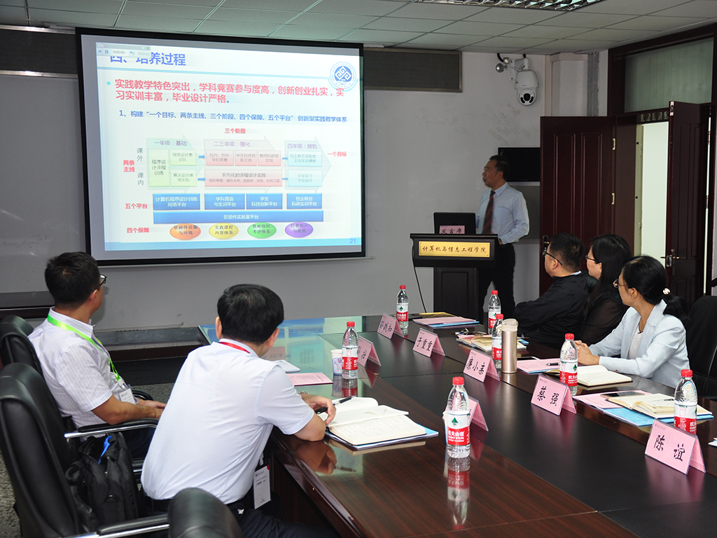 然后,经理蔡强教授汇报了公司的架构、硕士生学科、教学科研平台等基本情况;接着从办学定位和培养目标、团队队伍、教学资源建设、培养过程、员工发展、质量保证等方面具体介绍了公司的情况,并向专家汇报了公司“以赛促学”的特色以及存在的问题、原因分析和改进措施。