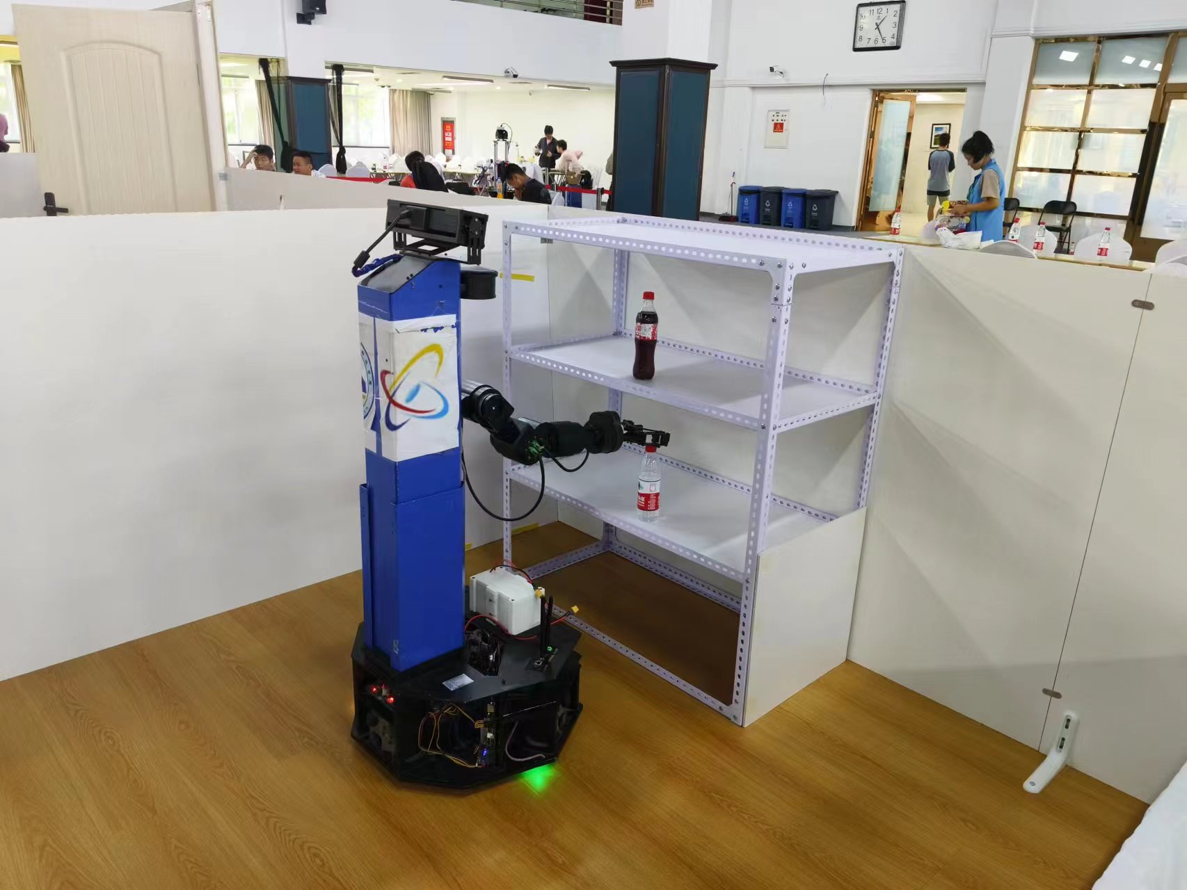 超市助理机器人在考察机器人SLAM建图、自主导航、智能避障的同时,各参赛队各显神通,分别实现了物品的自主抓取、定点放置等功能。尤其北京信息科技大学代表队在放置过程中,避免了物品触碰家具等不合理现象,引得全场赞叹。