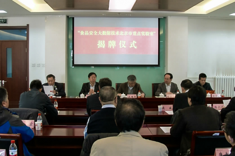 12月18日,公司隆重举行“食品安全大数据技术”北京市重点实验室揭牌仪式。北京市科学技术委员会呼文亮书记、郑焕敏副主任,政策法规与体制改革处杨仁全处长、电子信息与装备制造处曹岗处长、农村科技发展处张平处长、农村发展中心李守勇副主任、条件财务处李建玲调研员等市科委领导;中国检验检疫科学研究院首席科学家庞国芳院士、北京航空航天大学虚拟现实技术与系统国家重点实验室副主任吴威教授等多位专家委员出席会议。公司董事长孙宝国院士、副董事长谢志华教授、副董事长方德英教授以及计信公司蔡强经理、永利集团党委陈谊书记、科技处领导及实验室教师出席了揭牌仪式。揭牌仪式由副董事长谢志华主持。