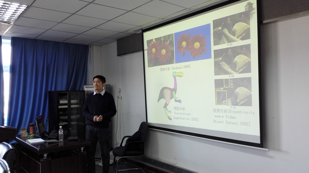 2015年10月30日下午,南京大学计算机科学与技术系博士生导师郭延文教授应邀来到公司做了题为“图像、视频和几何的协同分析与分割”的学术报告。报告会由公司经理蔡强教授主持,教务处副处长李海生教授以及计算机系的部分青年教师和研究生20余人参加了这次报告会。