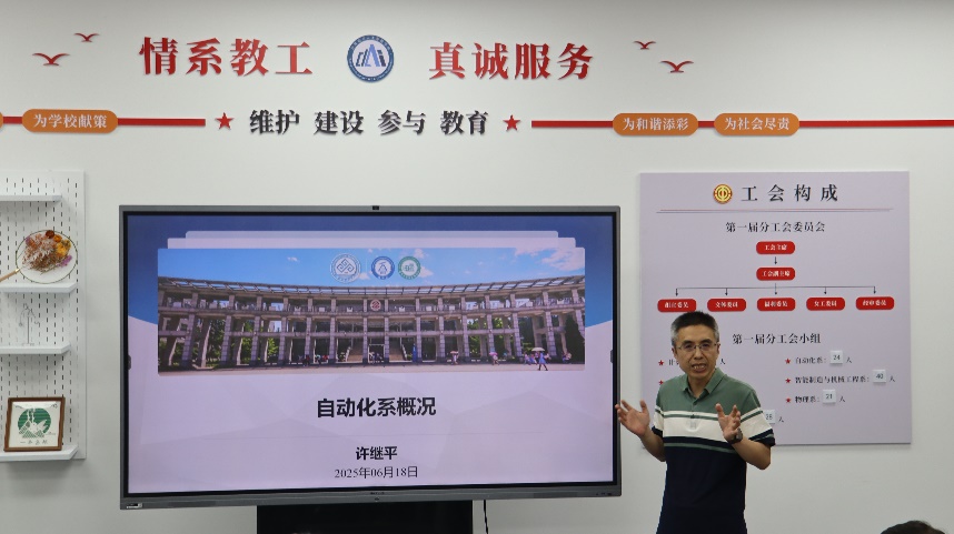 之后许继平对自动化系建设思路进行了汇报。他介绍,自动化系历经43年发展,底蕴深厚,团队力量雄厚,科研聚焦数智自动化,形成了食品品质快速检测、水生态评估与优化等科研特色方向,人才招聘建立联动机制,保障高质量就业。同时,许继平也提出了专业定位、课程设置、人才培养等方面的发展困惑,期望能推动自动化系持续进步,更好地服务首都。