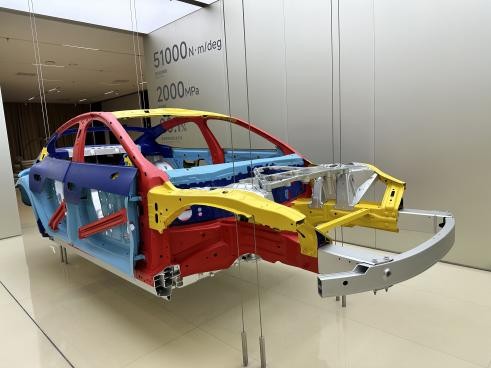 随后,师生参观了小米汽车的车身生产线。车间内,700多台机器人协同作业,关键工艺自动化率达100%。从冲压、焊接、涂装到总装,全流程智能化管理让师生们惊叹不已;智能化压铸生产线、AVG小车、焊接机器人、装配机器人、检测机器人、连接机器人,无一不透露着数字化背景下,智能制造生产线的强大生产力和高质高效生产能力。特别是在大压铸车间,全球领先的一体化9000吨压铸技术让车身制造效率大幅提升。