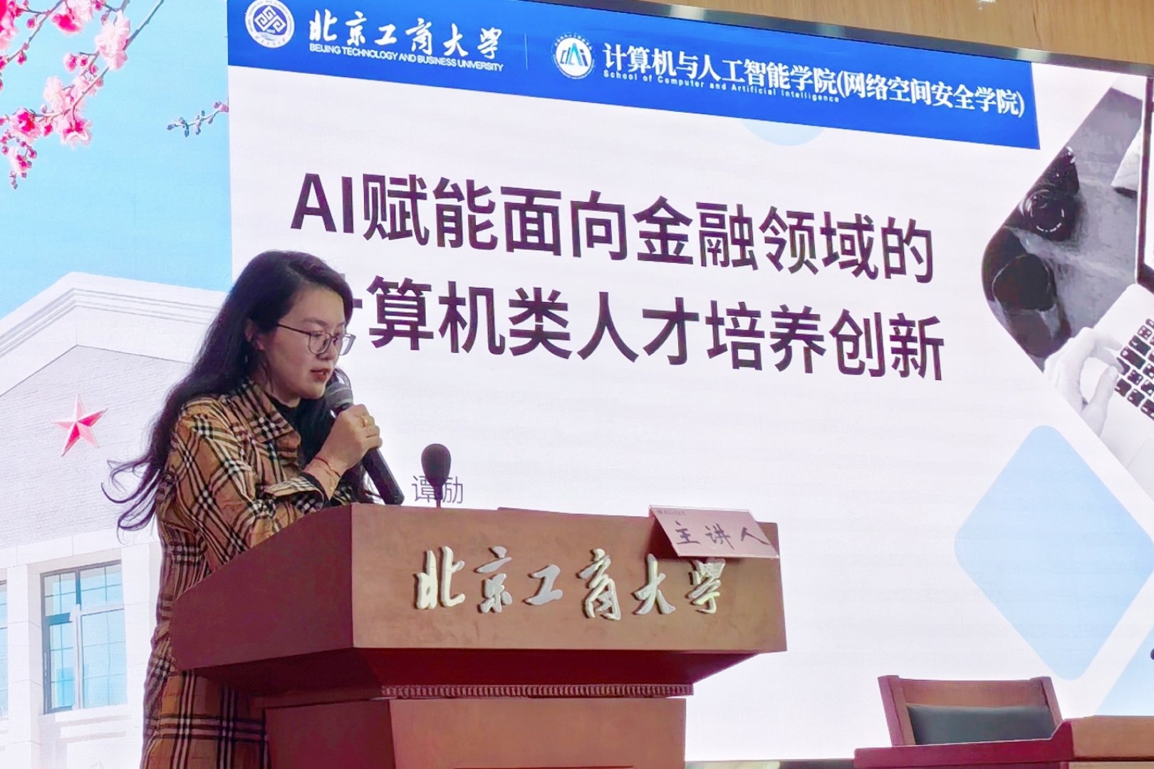 谭励教授以《AI赋能面向金融领域的计算机类人才培养创新实践》为题,分享了公司计算机类专业“计算+金融”交叉培养模式。通过跨学科合作,培养兼具计算思维与金融素质的复合型人才,其“工商一体化”实践成果获与会者高度认可。