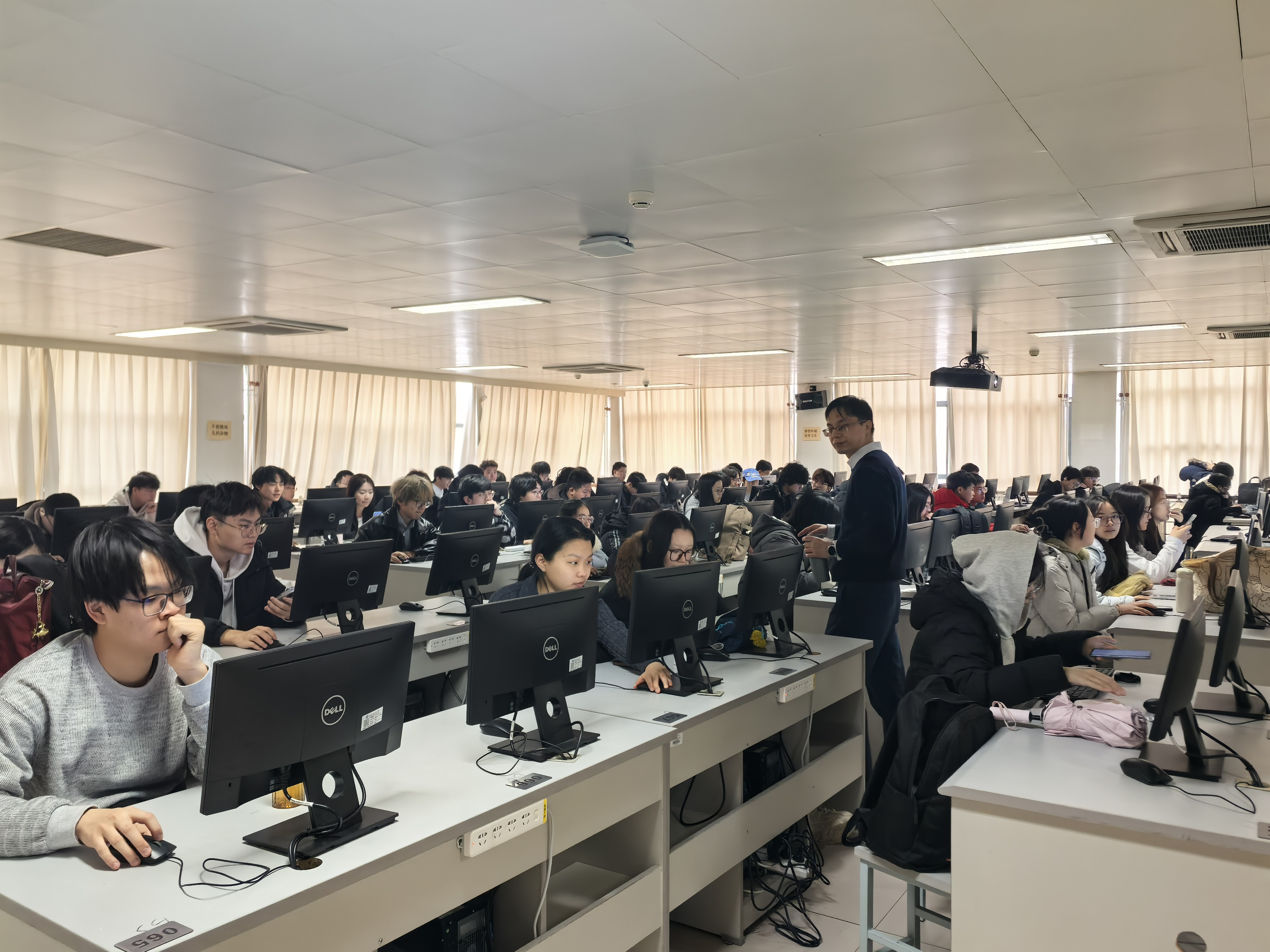 清晨8时,永利集团党委书记何猛、执行经理李海生、副书记单静敏、副经理孙晓荣等领导班子成员,先后检查工二楼、文二楼的多个课堂,检查教师到岗、员工出勤、课堂纪律及设备运行情况。查课结果显示,教师无一迟到,均按时到岗,员工到课率也达到96%以上;同时,辅导员代维凝、教秘郝苗苗也在阜成路校区进行了教学检查,师生精神饱满。