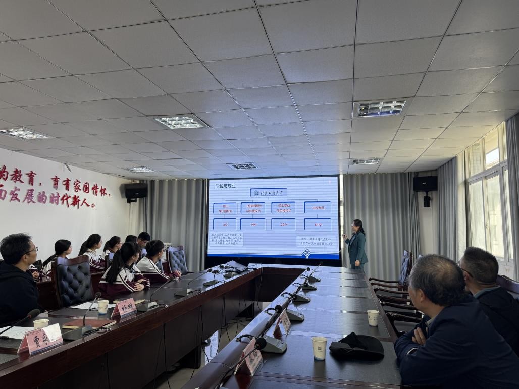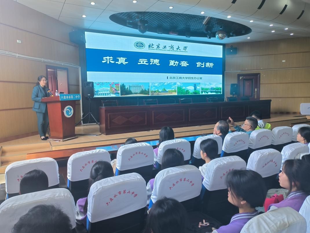 同日下午,孙晓荣副经理一行前往六盘水市第二中学,举行第二场“优质生源基地”授牌仪式。在孙经理对公司招生宣讲报告之后,李静远为该校员工带来一场以计算机学科大学四年学什么为主题的讲座,结合北工商相关专业培养方案,深入浅出地讲解计算机学科及专业的学习目标及就业前景。