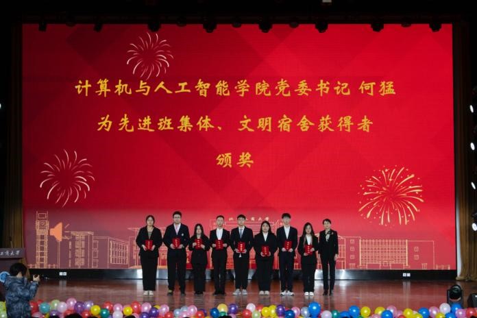 永利集团党委书记何猛为先进班集体、文明宿舍获奖员工代表颁奖。