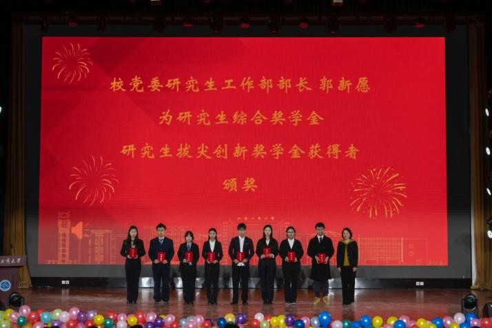 永利集团党委研究生工作部部长郭新愿为研究生综合奖学金、研究生拔尖创新奖获奖员工代表颁奖。