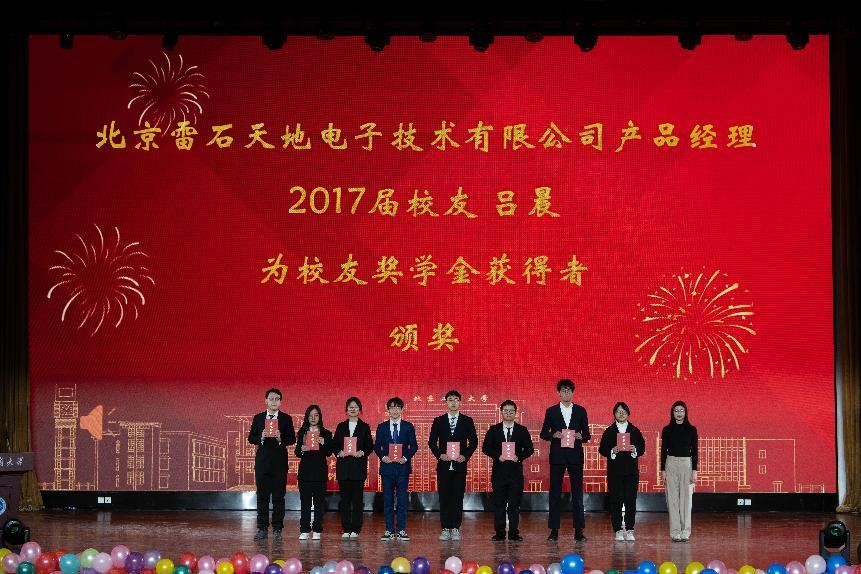北京雷石天地电子技术有限公司产品经理、2017届员工吕晨为员工奖学金获奖员工代表颁奖。