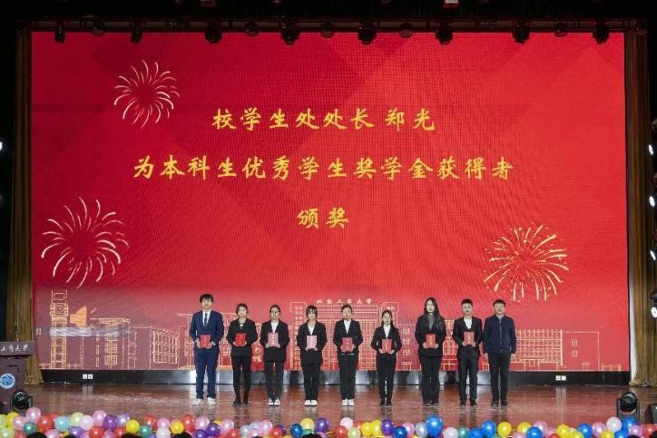 校员工处处长郑光为本科生优秀员工奖学金获奖员工代表颁奖。