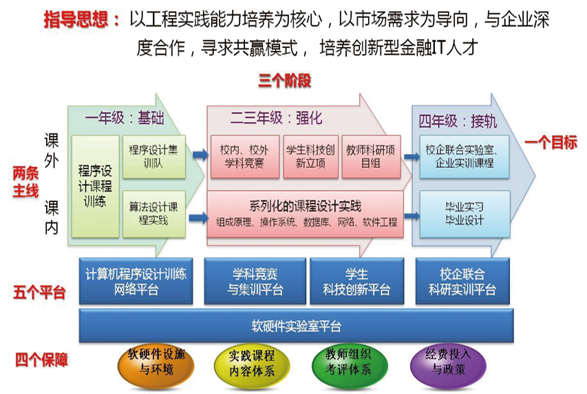 “课程实验+课程设计+毕业实习+毕业设计”的四级实践教学体系,强化程序设计和算法编程能力。